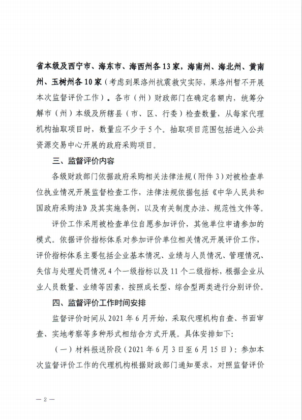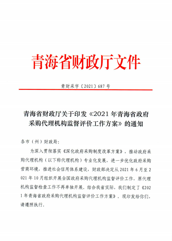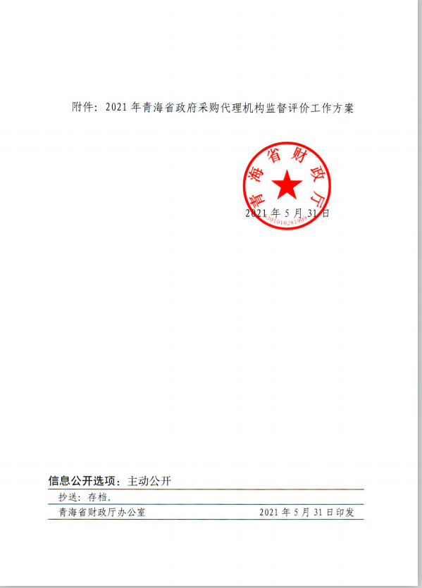 | 青海省財政廳關(guān)于印發(fā)《2021年青海省政府采購代理機構(gòu)監(jiān)督評價工作方案》的通知 |